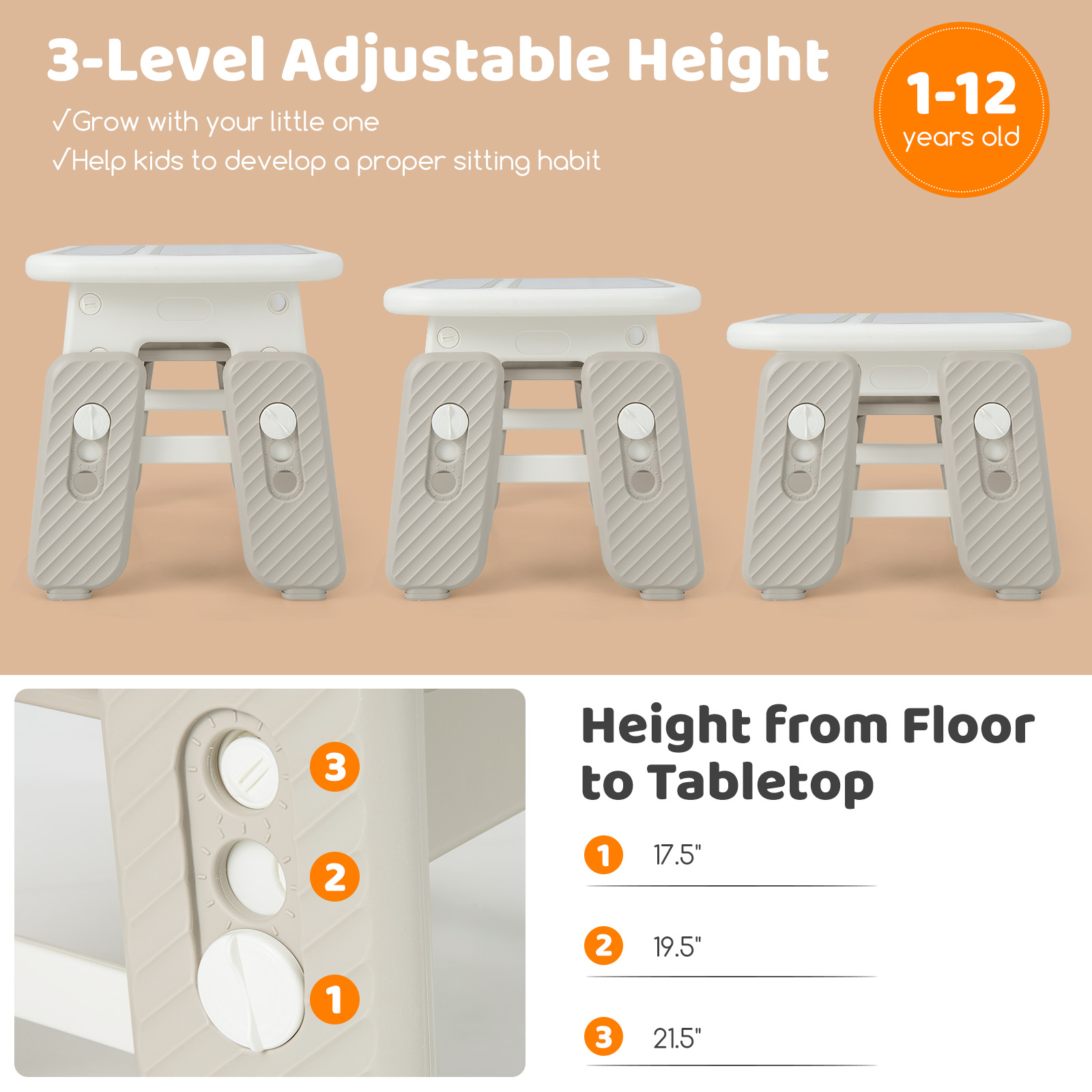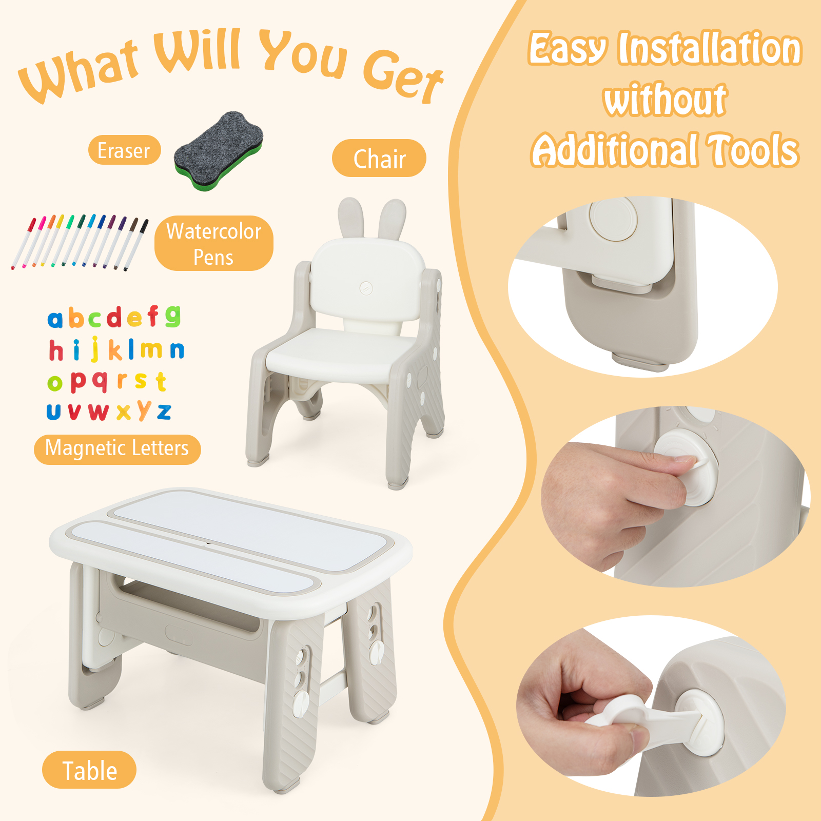 COSTWAY Kids Functional Desk and Chair Set, Convertible Activity Table Set w\u002F 2 Flipped Top Boards