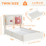TWIN Size Fabric Bed Frame, with Two Storage Drawers, Detachable Headboard Pillows