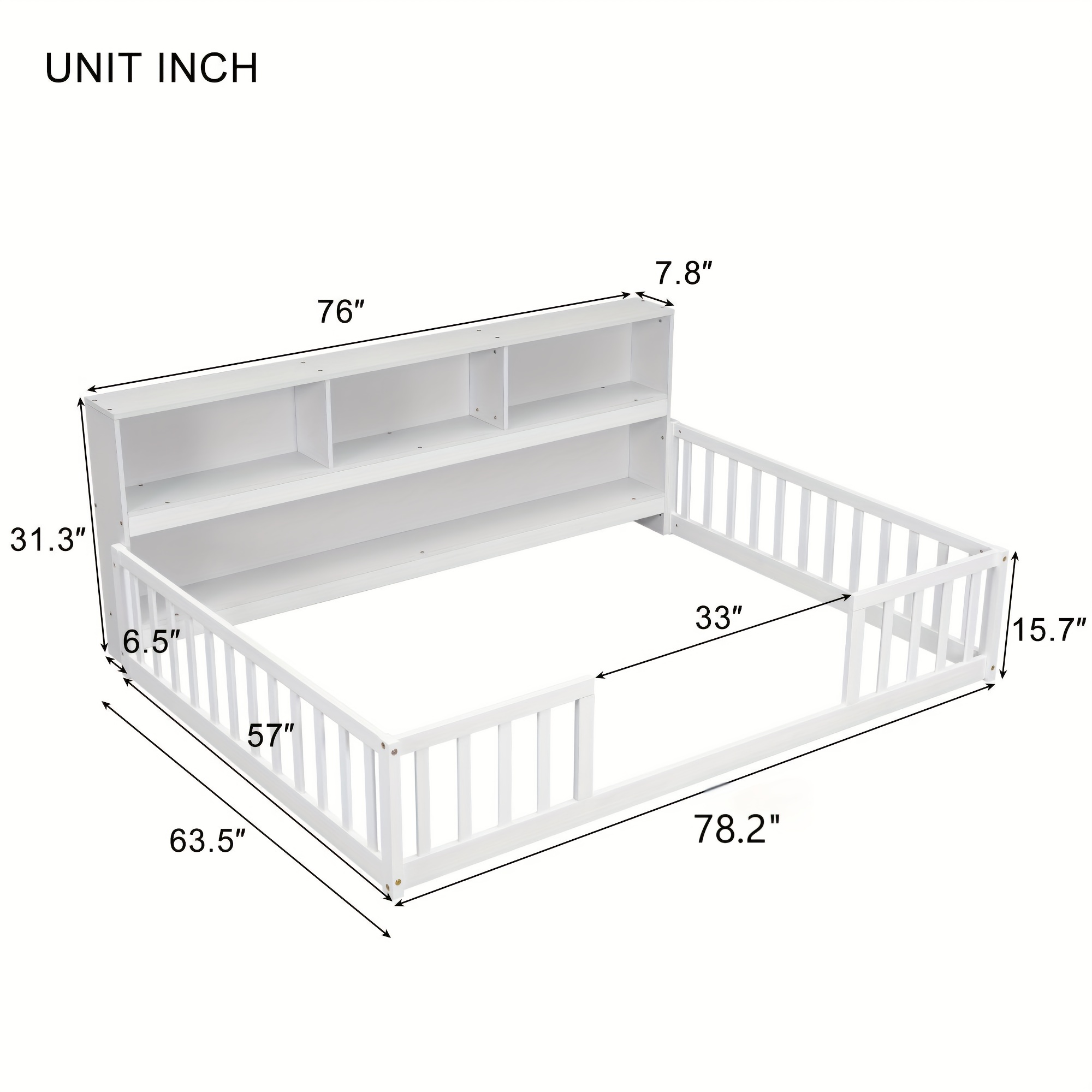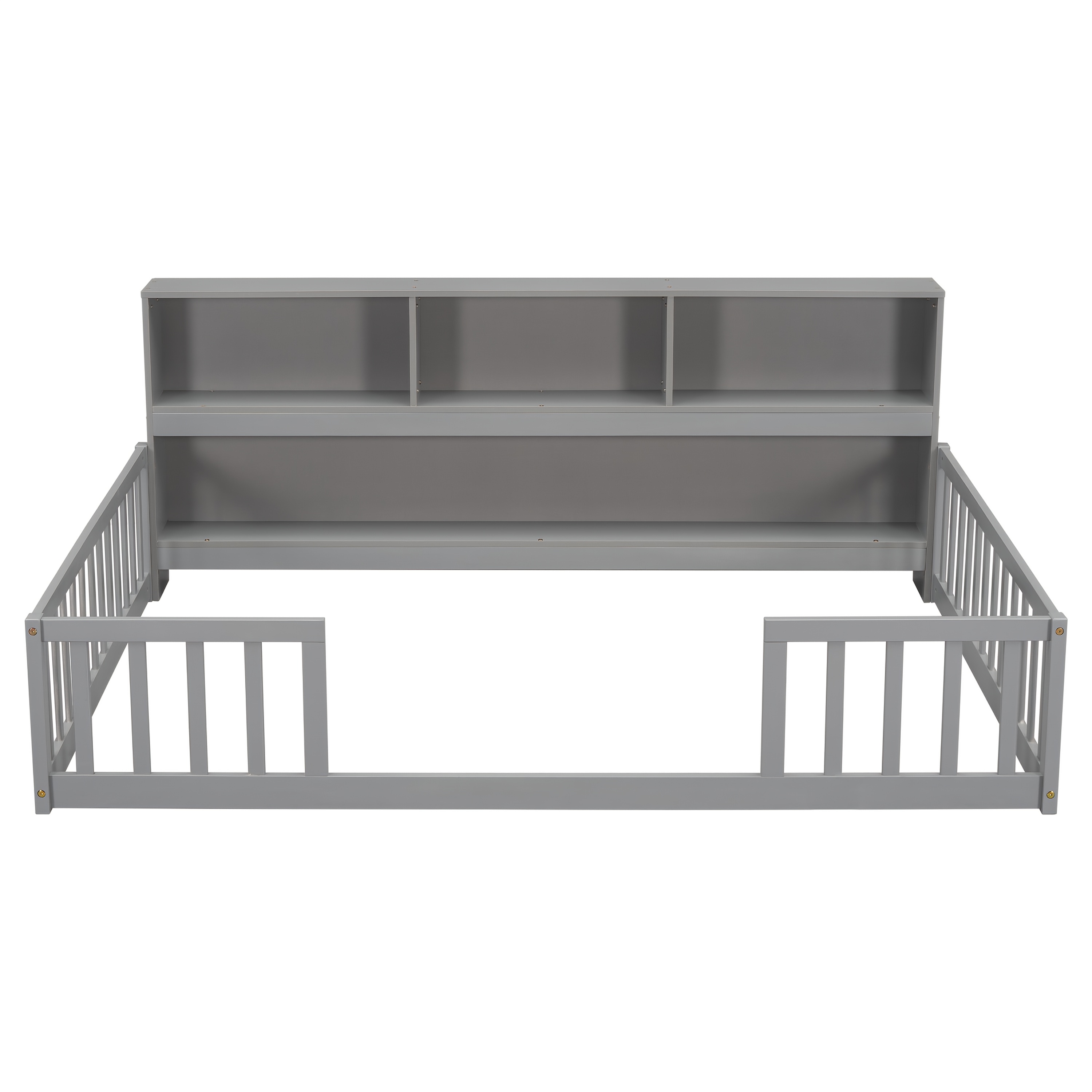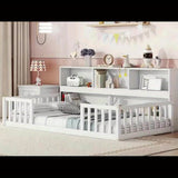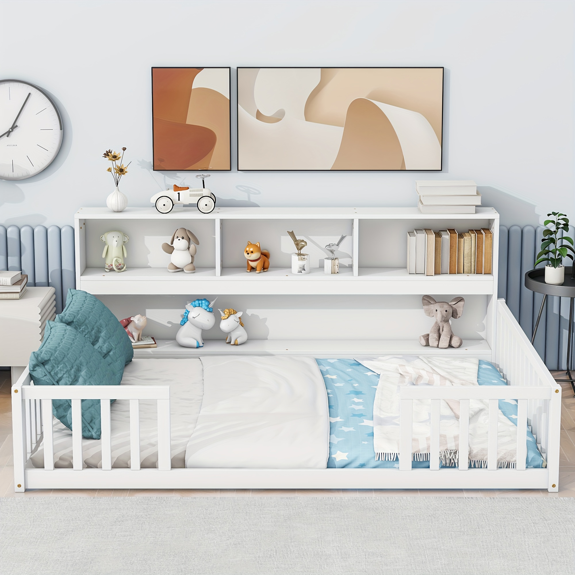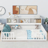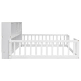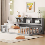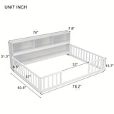 Bellemave Full Size Floor Bed with Bookcase & Shelves - Low-Profile Kids Bed with Safety Guardrails