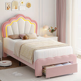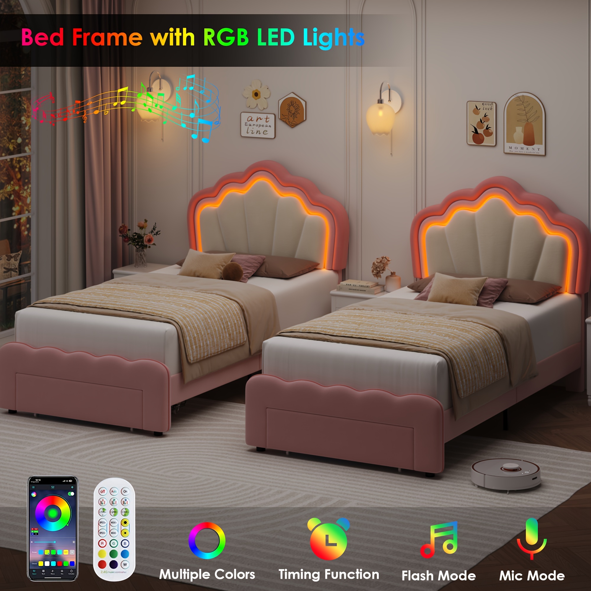 FULTRU Twin\u002FFull Size Led Bed Frame, Pink\u002F Blue Platform Bed With Large Drawer