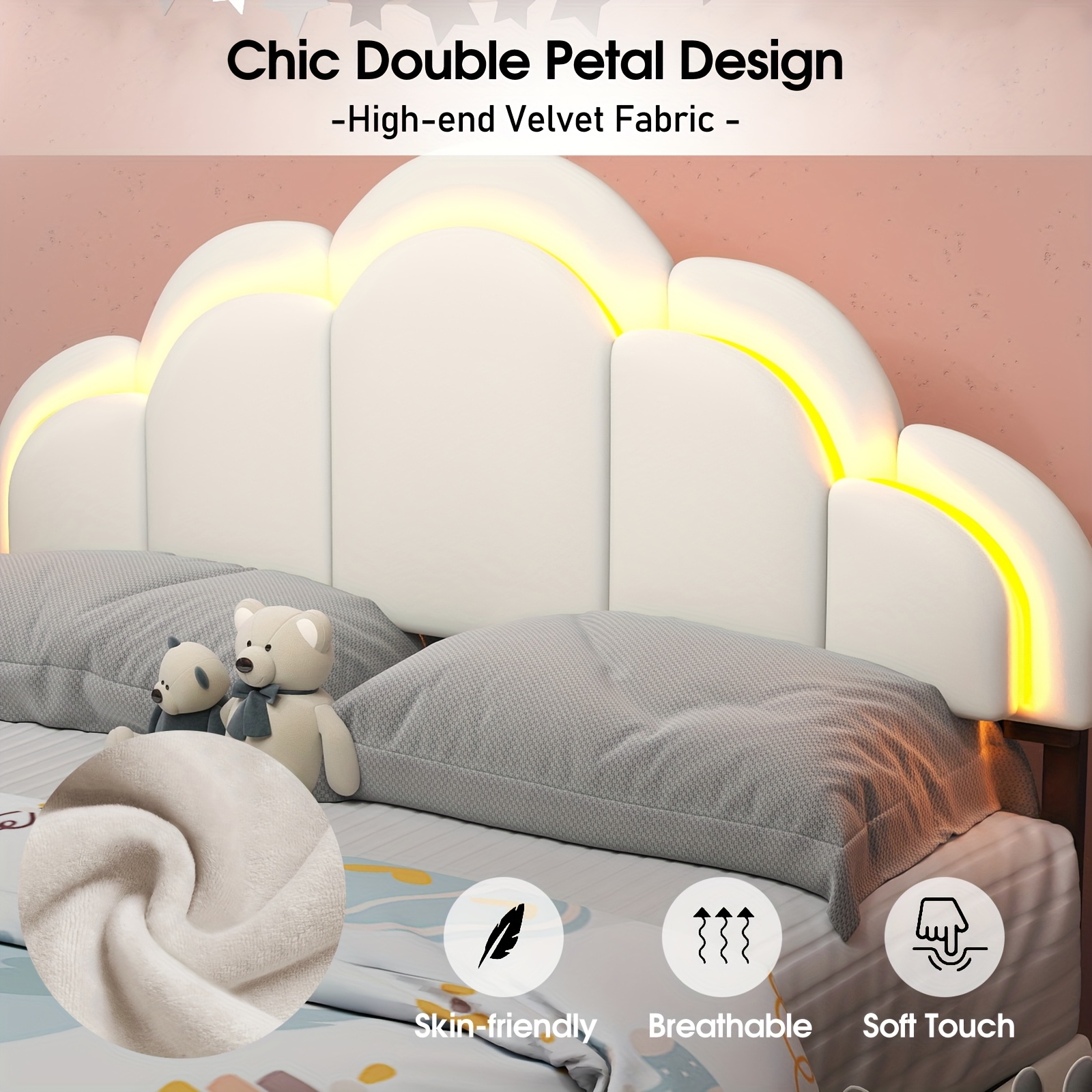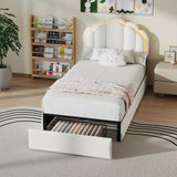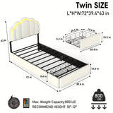 Twin\u002FFull Upholstered LED Bed Frame with Storage Drawer and Chic Double Wavy Headboard