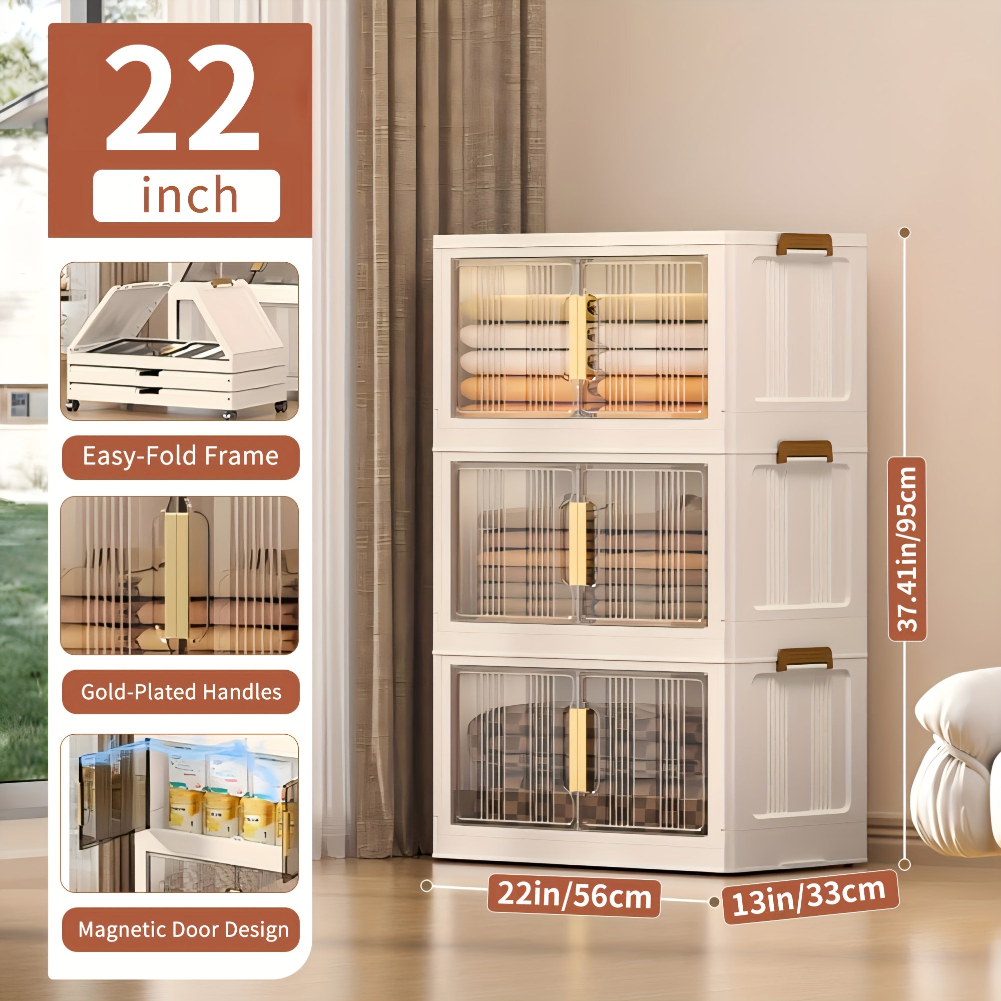 3\u002F4\u002F5 Tier Plastic Storage Bins with Lids - Extra Large Storage Cabinet, Collapsible Stackable Containers with Wheels
