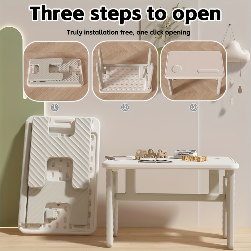 Kids Learning Desk Foldable Kids Learning Desk with One-Click Setup - Durable Plastic White Modern Study Table for Toddlers