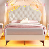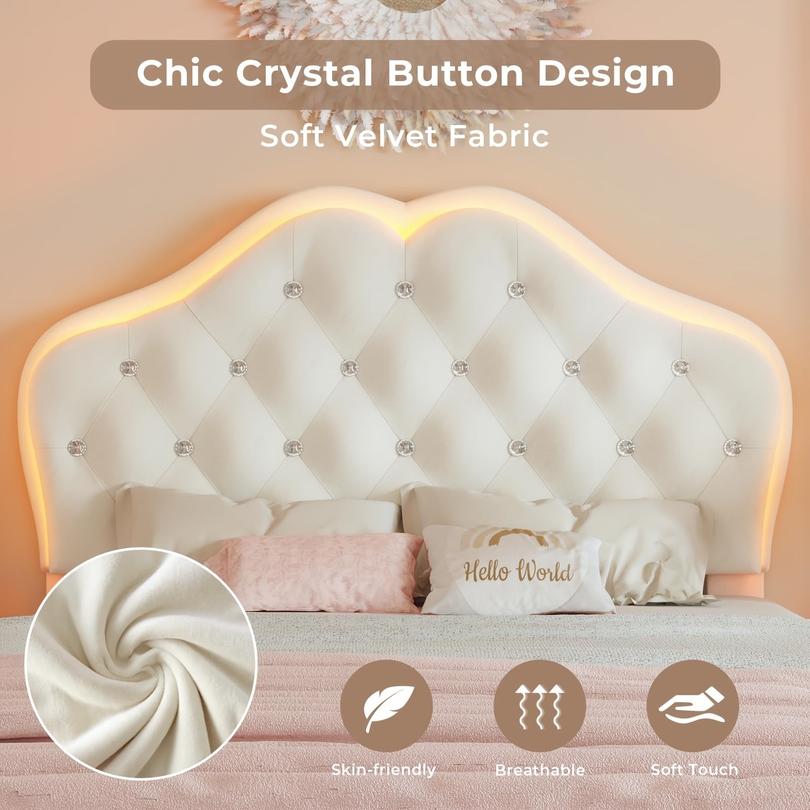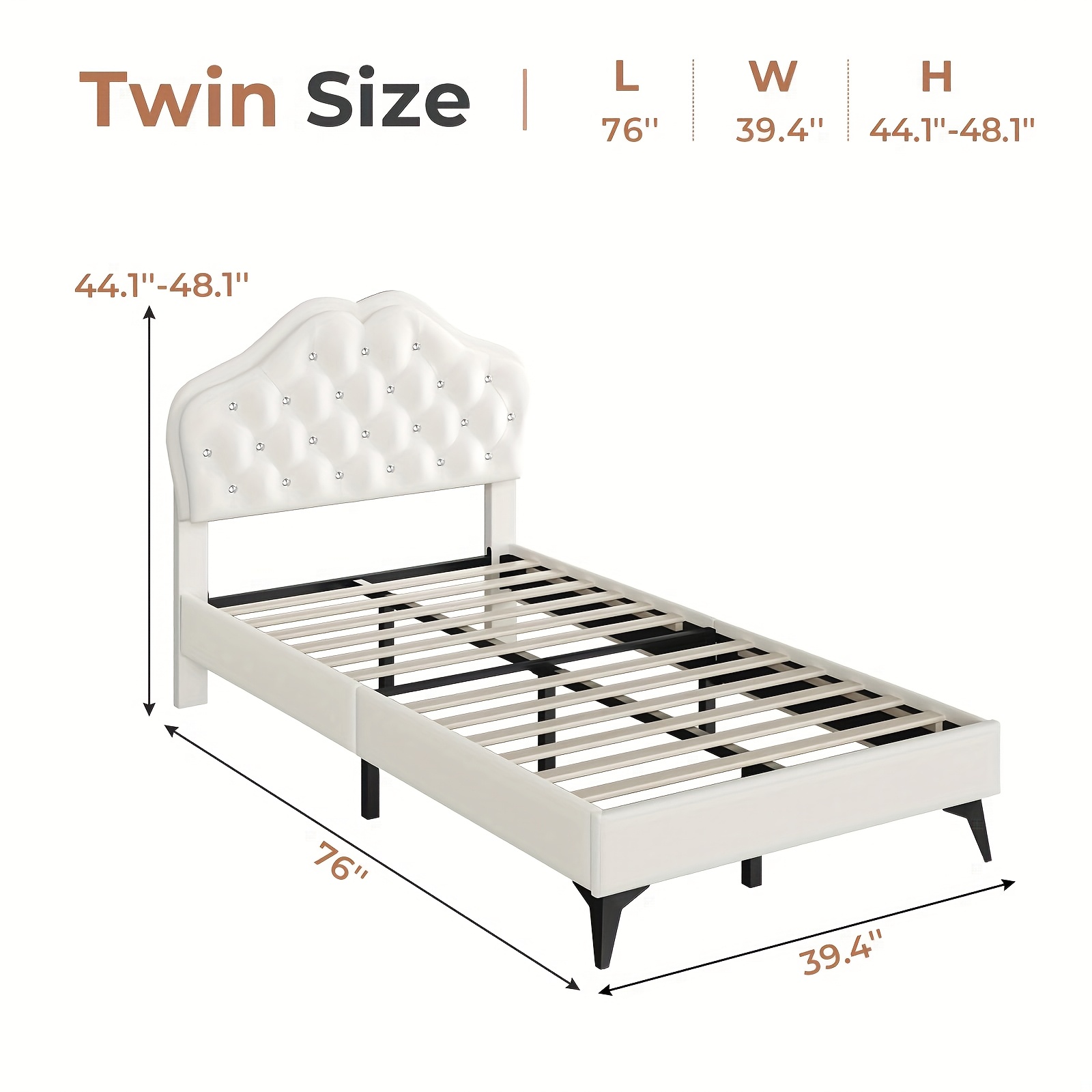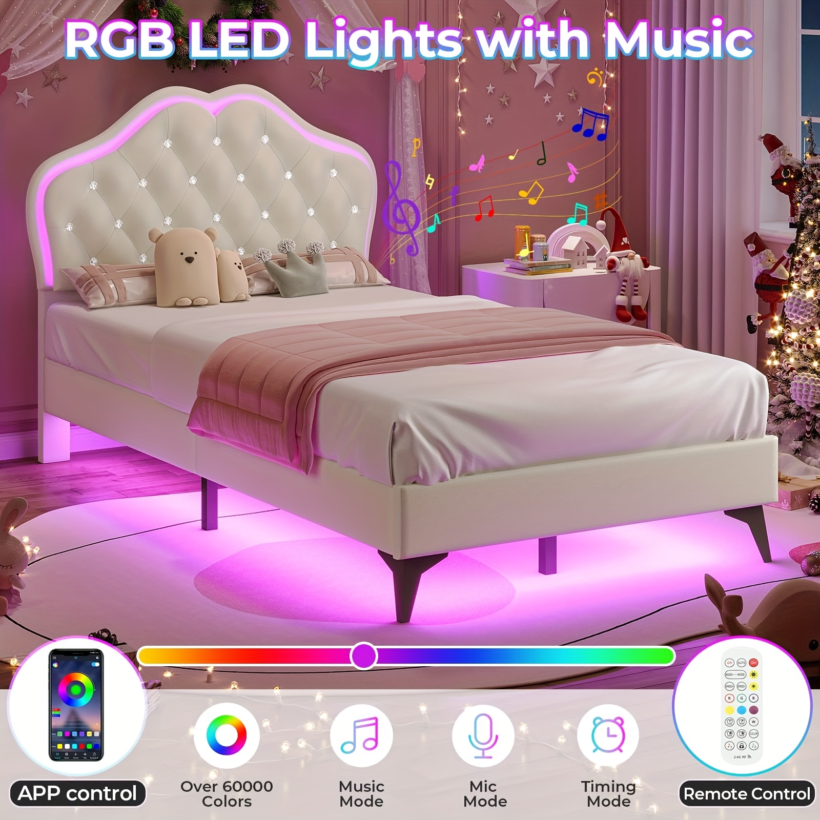 Princess Bed Frame with LED Modern Twin Size Princess Bed Frame with LED Lights Headboard & Crystal Buttons