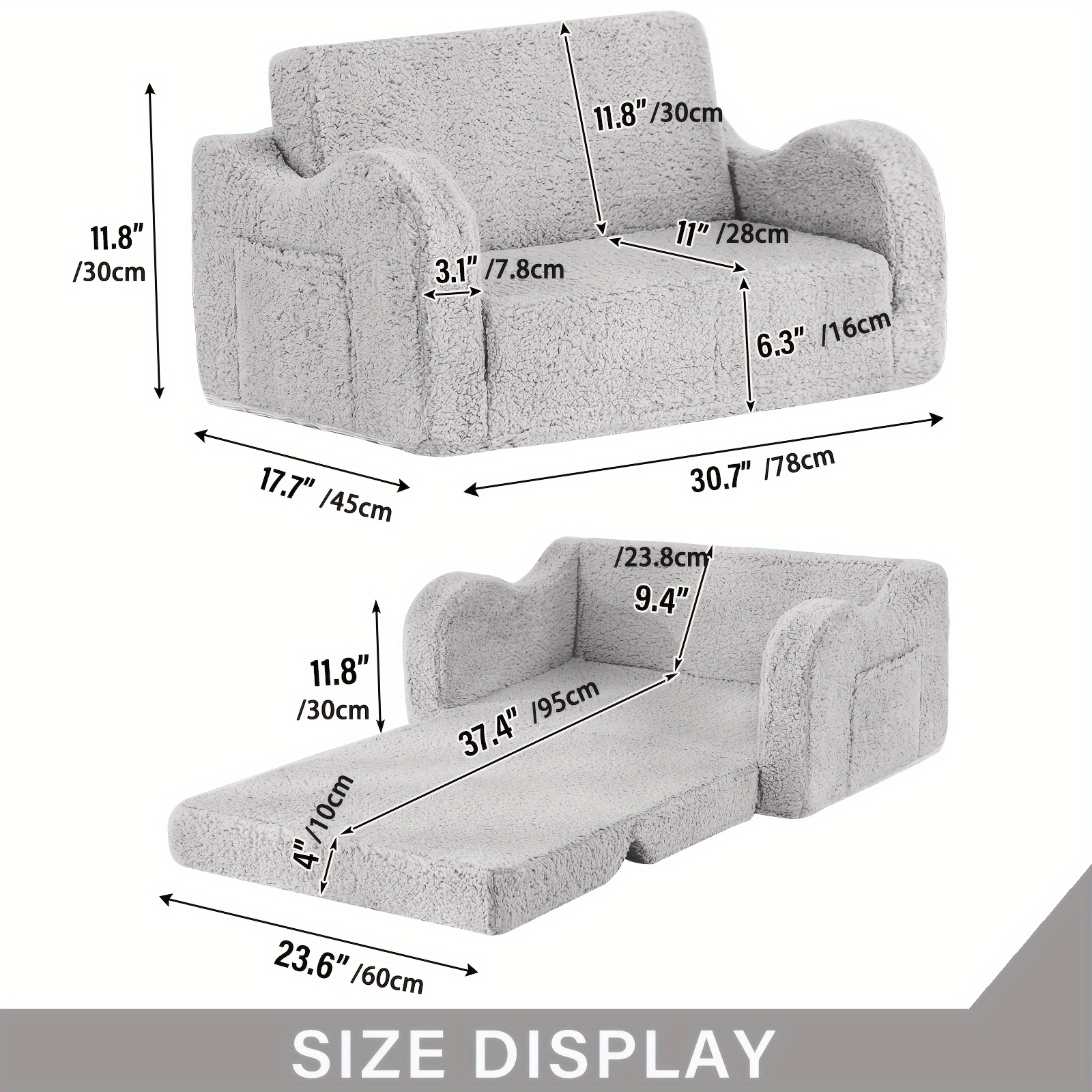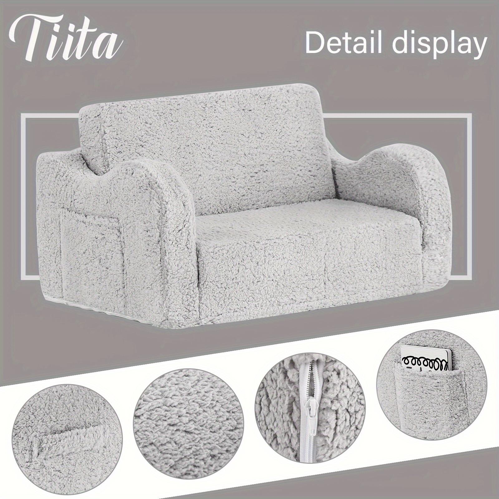 Tiita Kids Sofa Chair, 2 In 1 Toddler Fold Out Couch, Comfy Kids Sofa For Playroom-Extra Soft 2 Seats