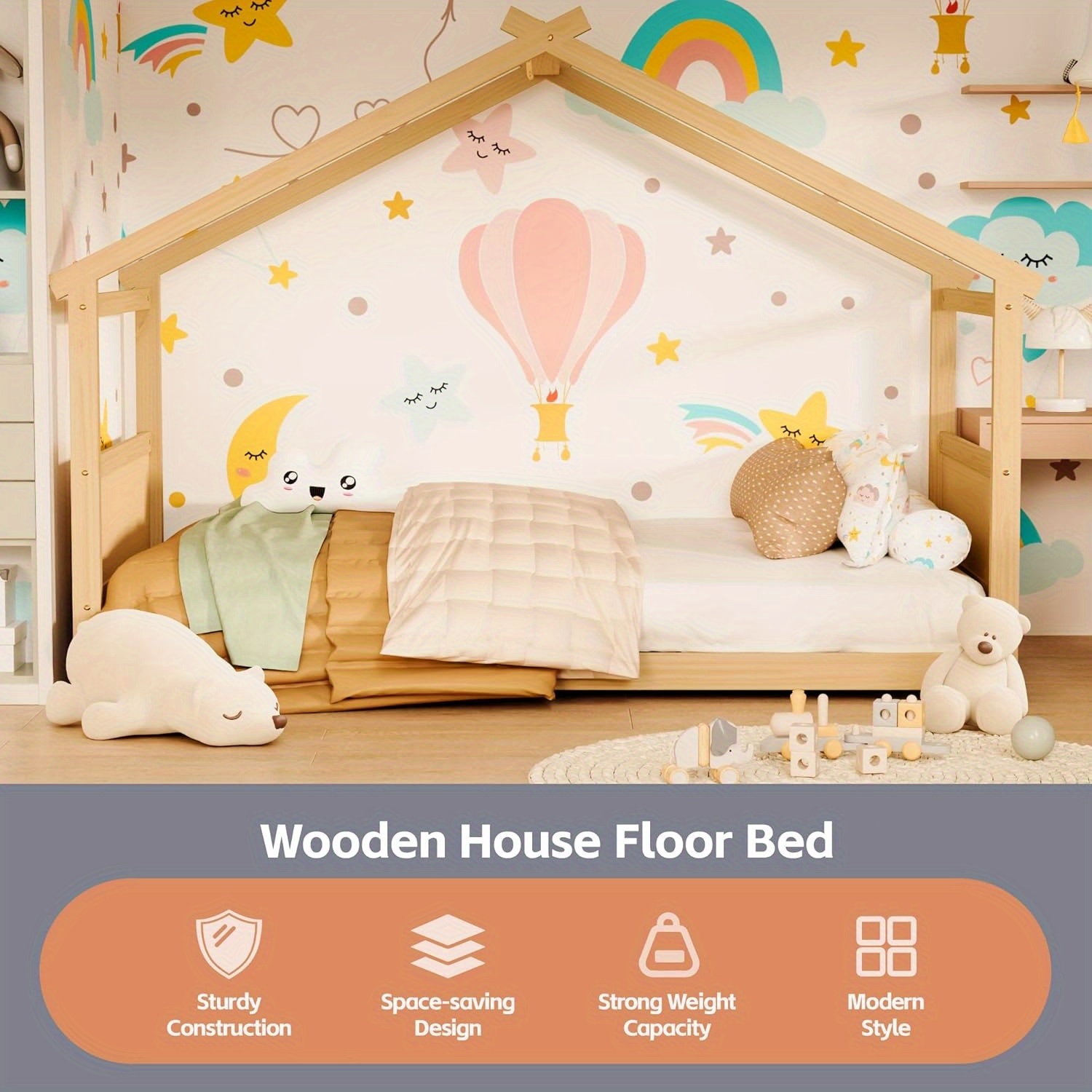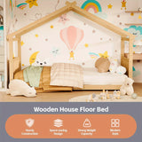 Twin Floor House Bed Frame with Headboard & Footboard - Sturdy Hardwood Construction, Space-Saving Floor Bed for Toddlers